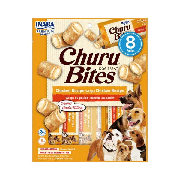 INABA CHURU BITES CHICKEN WRAPS CHICKEN Przysmaki kremowe w postaci poduszeczek z kurczakiem dla psów - 96 g