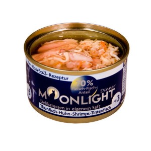 MOONLIGHT - DINNER nr 3 - naturalna karma z tuńczykiem, kurczakiem, krewetkami i kałamarnicami sosie własnym dla kotów - 80 g x 10 szt.