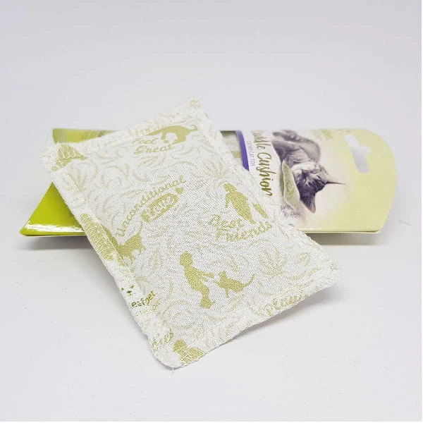 Poduszeczka wykonana jest z miękkiej bawełnianej tkaniny i wypełniona aromatycznymi konopiami oraz walerianą. Poprzez potrząsanie, rzucanie i ocieranie się o poduszkę, zawarte w niej konopie i waleriana na nowo uwalniają swój niezwykle stymulujący dla kota zapach.