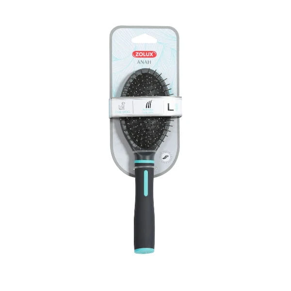 Szczotka pneumatyczna z gamy ANAH firmy Zolux posiada metalowe igły, które umożliwiają szczotkowanie gęstej sierści i delikatne jej rozczesywanie. Ponadto nadaje sierści połysk i objętość.