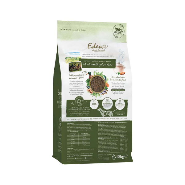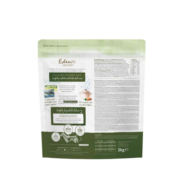 EDEN Kaczka i śledź - to kompletna, odżywcza karma, wspierająca zdrowie i dobre samopoczucie szczeniąt, dorosłych psów i seniorów.