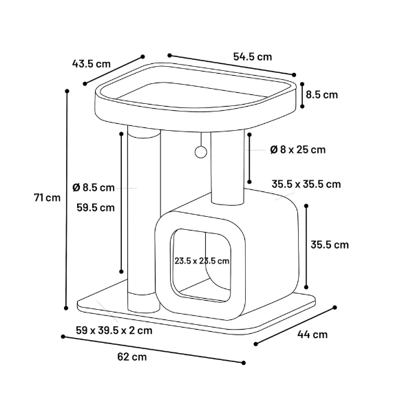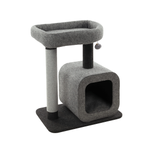 Drapak Anzu posiada bardzo oryginalny design i świetnie będzie prezentował się we wnętrzu mieszkalnym. Legowisko pokryte jest miękkim pluszem (które wyglądem przypomina filc). Produkt wyposażony jest w solidny słupek z wytrzymałą, bawełnianą liną do drapania. Kot będzie mógł udać się na drzemkę do specjalnego domku (w środku znajduje się wyjmowana poduszka). Gdy pupil będzie chciał poobserwować otoczenie - może się udać na samą górę.