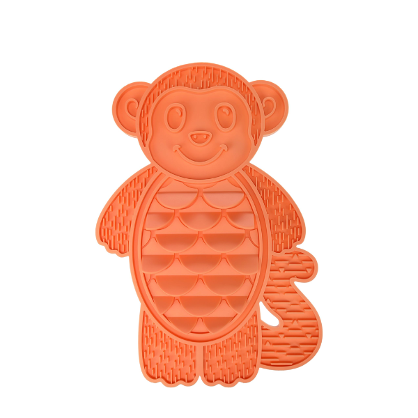 Silikonowa mata w kształcie pomarańczowej małpki do zlizywania karmy, pasztetu lub pasty pozwoli na odstresowanie, zajęcie pupila i pobudzenie zmysłów!