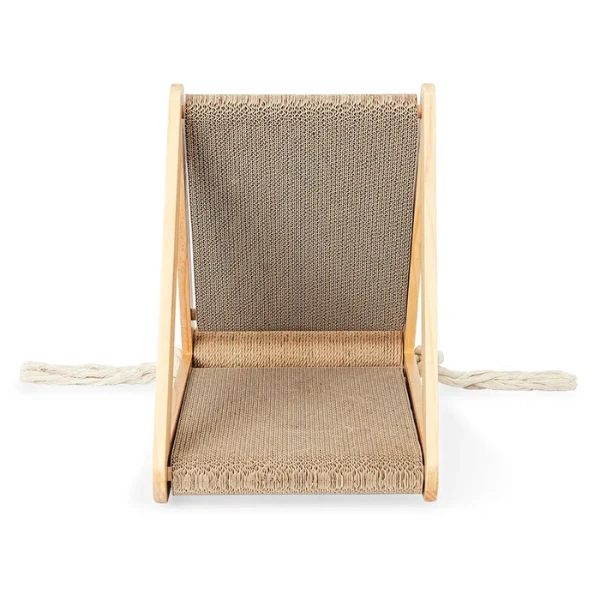 - wyjątkowo trwały - skonstruowany z drewnianej trójkątnej podstawy, boków z tektury falistej i liny konopnej na górze, dzięki czemu będzie służył przez długi czas,