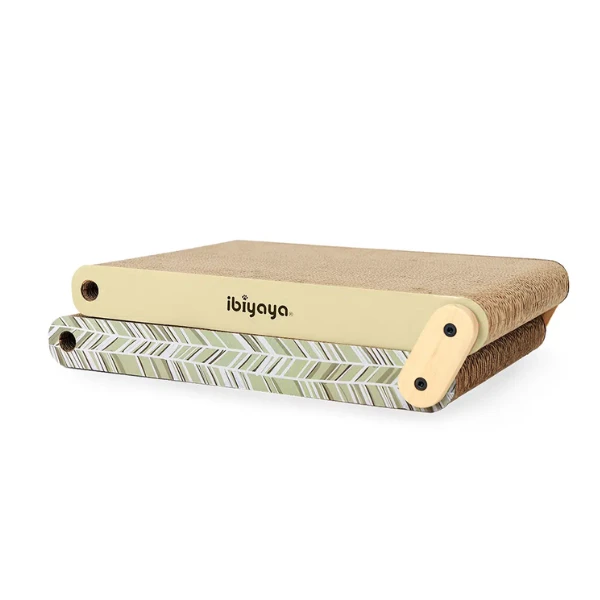 IBIYAYA FOLD-OUT SAGE - to drapak, składający się z dwóch dwustronnych kawałków tektury falistej. Można go złożyć jeden na drugim tak, aby zajmowały mniej miejsca lub rozłożyć, aby zapewnić dwukrotnie większą powierzchnię do drapania, w zależności od preferencji kota. Nie zajmuje dużo miejsca w domu, ponieważ łatwo go spakować, gdy nie jest używany.