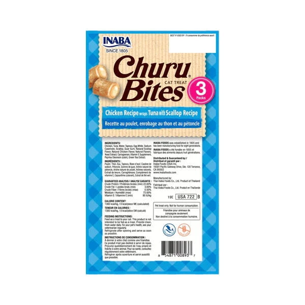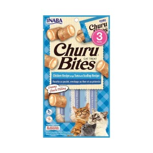 INABA CHURU BITES CHICKEN WRAPS TUNA & SCALLOP Przysmaki kremowe w postaci poduszeczek z kurczakiem, tuńczykiem i przegrzebkami dla kotów - 30 g