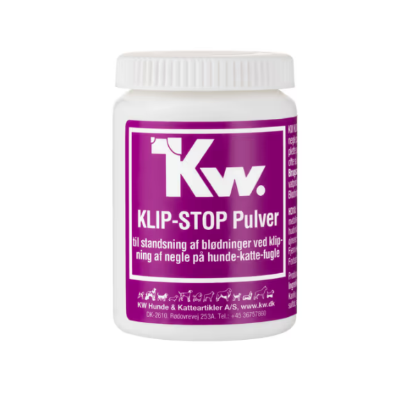 Zasypka tamująca krwawienie KW Clip-Stop Powder spowodowane zbyt krótkim przycięciem pazurów. Składniki proszku wchłaniają wilgoć, działają ściągająco i hamująco na krwawienie, które ustępuje już po upływie chwili. Produkt niezastąpiony w każdym salonie groomerskim lub hodowli. To także obowiązkowy element wyposażenia domowej apteczki, jeśli obcinamy pupilowi pazurki samodzielnie.