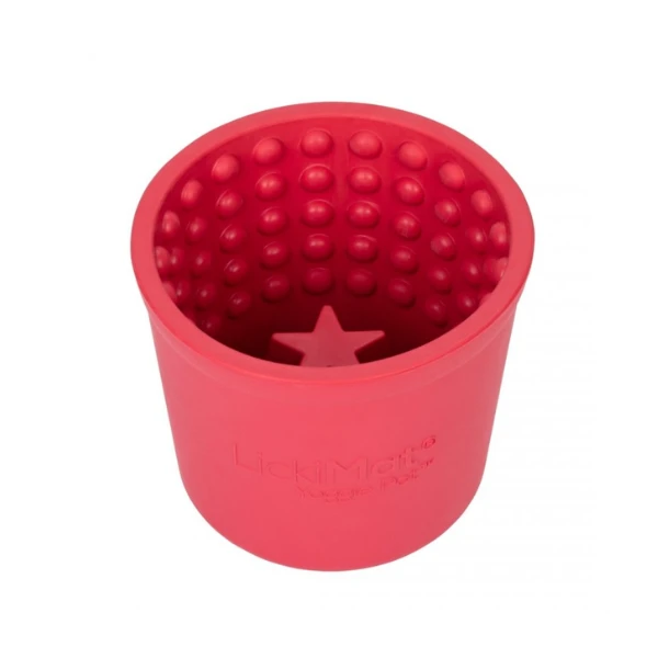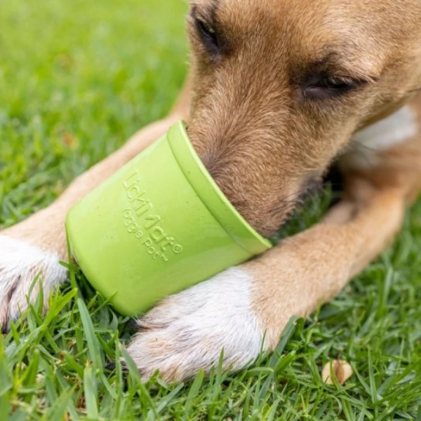 LICKIMAT YOGGIE POT - to wyjątkowa miska w kształcie garnuszka, która nie tylko pobudza kubki smakowe psa, ale także masuje język, dzięki specjalnie zaprojektowanym wypustkom. Niezależnie od tego, czy jest to mokra karma, surowe mięso, jogurt, masło orzechowe czy namoczona sucha karma, YOGGIE POT jest idealny do każdego rodzaju pysznego przysmaku.