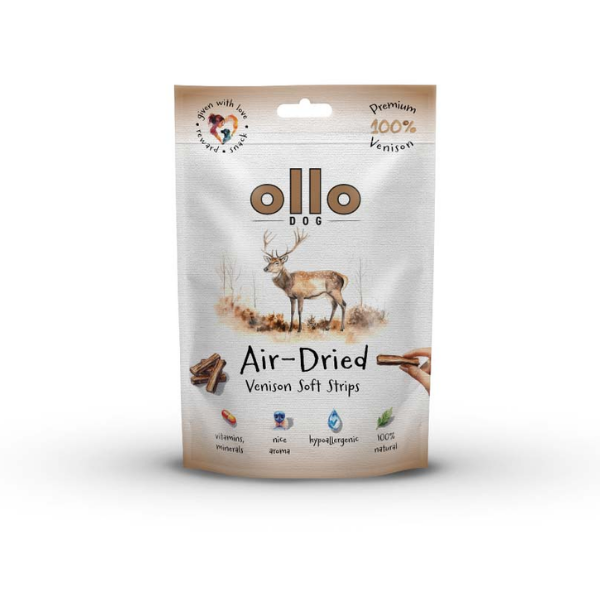 OLLO AIR DRIED VENISON STRIPS to nie tylko smaczna nagroda, ale również sposób na wzmocnienie więzi z Twoim psem i dbałość o jego zdrowie. Wybierz to, co najlepsze z natury!