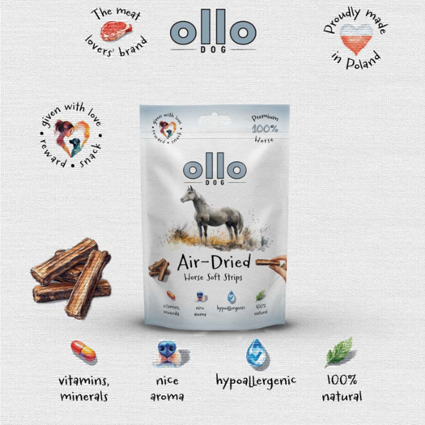 OLLO AIR DRIED HORSE STRIPS to nie tylko smaczna przekąska, ale także cenny element diety Twojego psa. Wybierając je, inwestujesz w jego zdrowie i szczęście.