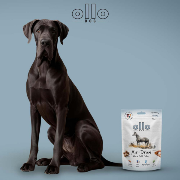 Ollo Air-Dried Horse Soft Cubes - to naturalne, hipoalergiczne, monobiałkowe przysmaki z koniny w kształcie kostek. Są delikatnie suszone powietrzem. W 100% naturalny produkt, stworzony z myślą o psach wszystkich ras i w każdym wieku. Są miękkie i monobiałkowe, co jest niezwykle istotne dla psów z alergiami pokarmowymi oraz tych z wrażliwym żołądkiem.