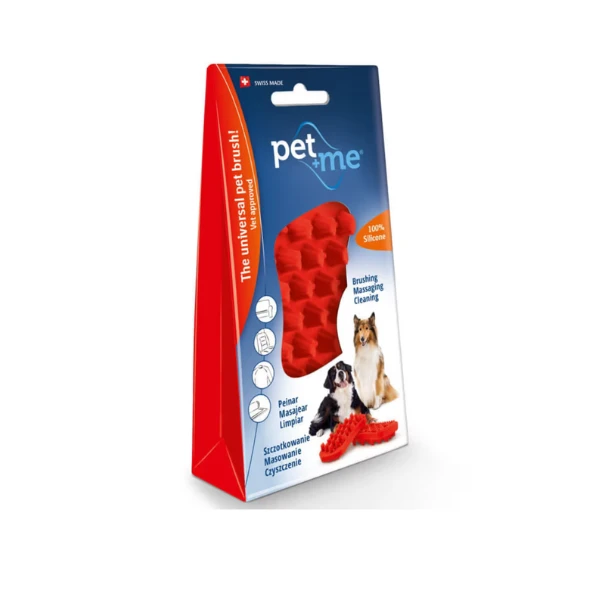 Pet+Me Firm Silicone Brush nie tylko usuwa luźny włos, ale również masuje skórę Twojego pupila, stymulując tym samym naczynia krwionośne. Dzięki czemu zwierzę poczuje się zrelaksowane, a jego szata stanie się zdrowa, lśniąca i odpowiednio oczyszczona, co skutkuje szybszym porostem włosów.