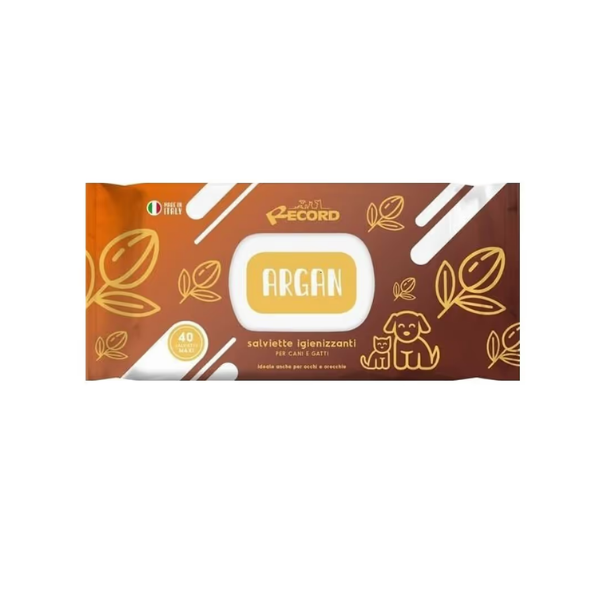 Record Record Uniwersalne chusteczki do czyszczenia sierści, oczu, uszu psa i kota - o zapachu arganu - 40 szt.