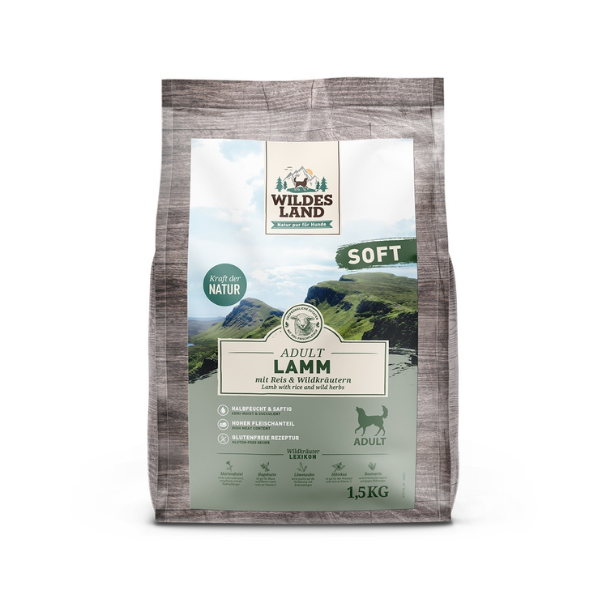 WILDES LAND ADULT DOG Soft Lamb - to półwilgotna karma z jagnięciną i dzikimi ziołami dla dorosłych psów.