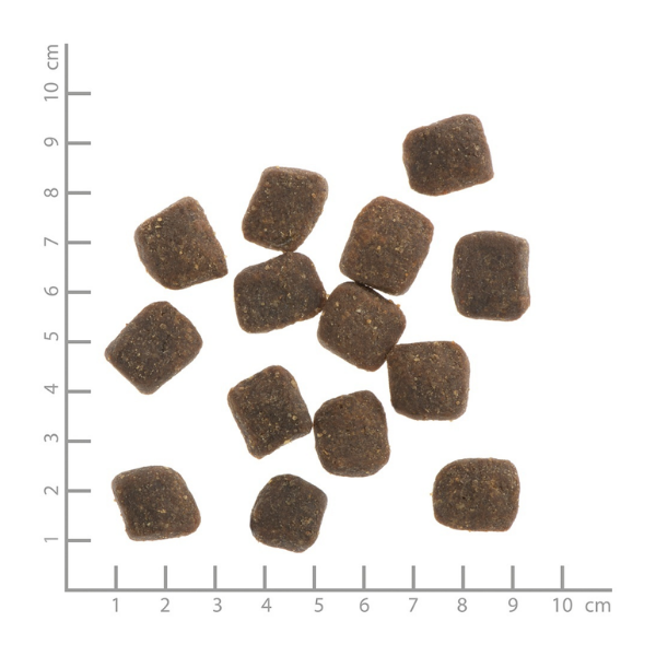 - delikatne miękkie granulki – dzięki specjalnemu procesowi produkcji i recepturze soczyste i miękkie granulki są chętnie zjadane prze psy.
