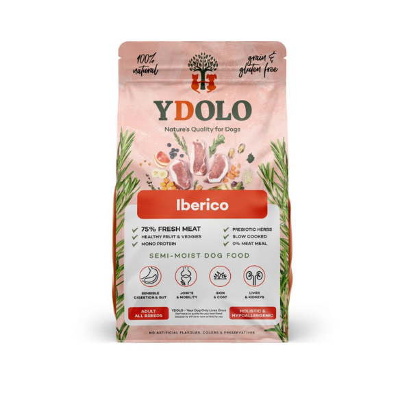 YDOLO IBERICO - to półwilgotna, monobiałkowa pełnoporcjowa karma dla psów, polecana w diecie eliminacyjnej. Zachwyca wyjątkowym smakiem najbardziej wymagające psie podniebienia. Do jej produkcji użyto świeżą wieprzowinę Iberico (75%) oraz naturalne składniki wspierające zdrowie i dobrą kondycję psa i dbające o jego długie, zdrowe i szczęśliwe życie - warzywa, owoce, zioła, dodatki superfood.