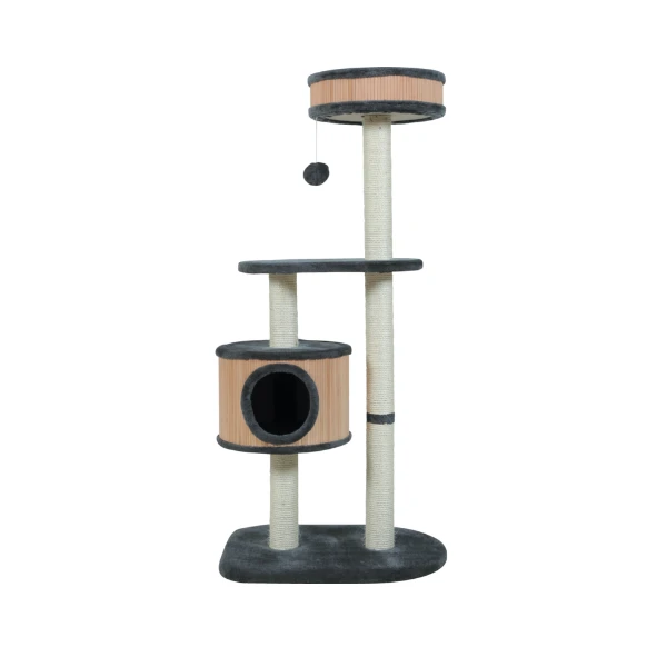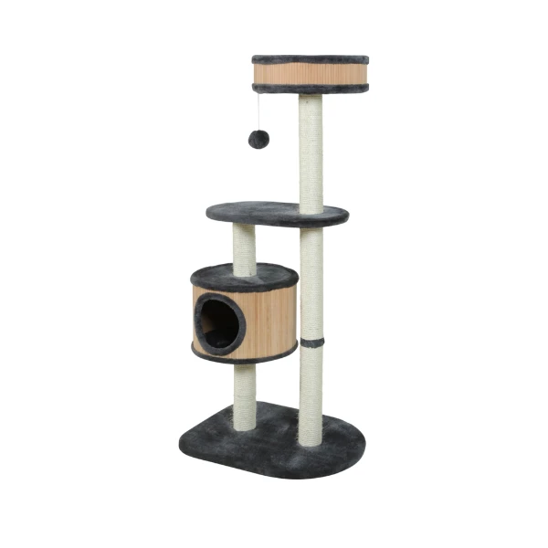 Produkt posiada liczne słupki pokryte plecionym sizalem, które umożliwiają kotu zaspokojenie naturalnej potrzeby ścierania pazurów, a także wyposażony jest w wiszącą zabawkę, która obudzi w zwierzęciu instynkt łowiecki.