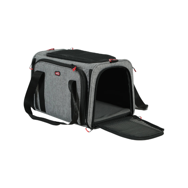 - Optymalna wentylacja: duże otwory z wytrzymałej siateczki na górze oraz po bokach zapewniają stały dopływ świeżego powietrza i umożliwiają pupilowi obserwację otoczenia.
